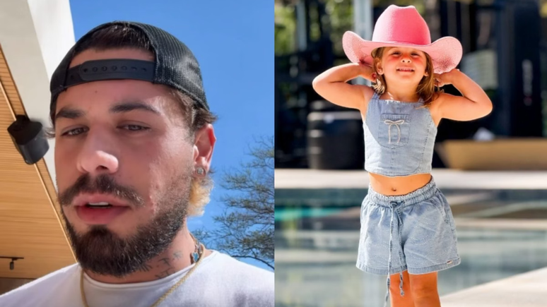 Nesta sexta-feira (5/9), Zé Felipe movimentou as redes sociais ao compartilhar registros da filha, Maria Flor, se divertindo em um parquinho. Nas imagens, a menina aparece usando um chapéu de cowboy rosa, o que chamou atenção dos seguidores. Em outra postagem, o cantor mostrou a filha novamente com o acessório, desta vez em uma foto posada, reforçando a escolha do look e gerando comentários entre os fãs.