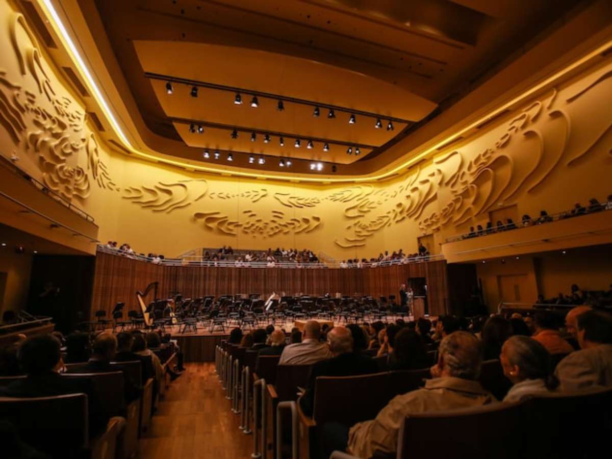 A principal, no andar superior, com as mesmas paredes amarelas de antes e uma nova obra, de Sandra Cinto, que reveste a sala e contribui para a acústica, tem capacidade para 773 pessoas e é exclusiva para espetáculos musicais. De música erudita, que está no seu DNA, mas não só: por exemplo, Patti Smith, ícone da contracultura, integrou a temporada 2025.