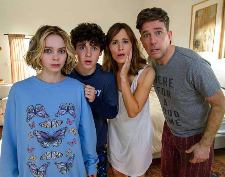 Além de Jennifer Garner como a mãe, o elenco conta com Ed Helms ("Se Beber, Não Case") como pai, e Emma Myers ("Wandinha") e Brady Noon ("Virando o Jogo dos Campeões") como os filhos.