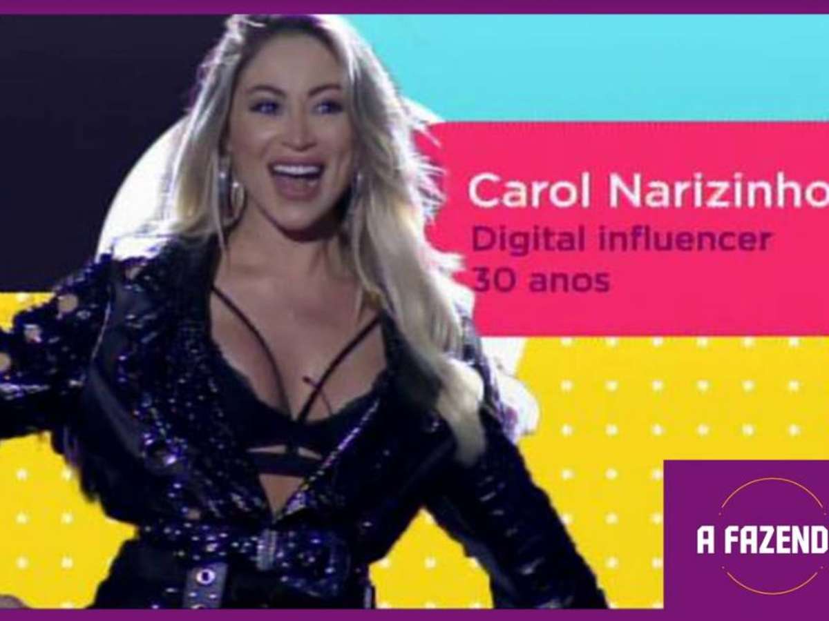 A ex-panicat Carol Narizinho foi a quinta eliminada do reality show A Fazenda 12, transmitido pela Record. A participante saiu do programa nesta quinta-feira, 15, com 29,5% dos votos. Ela estava na berlinda com Biel, que recebeu 33% dos votos, e Tays Reis, que conquistou 37,5% da preferência do público.