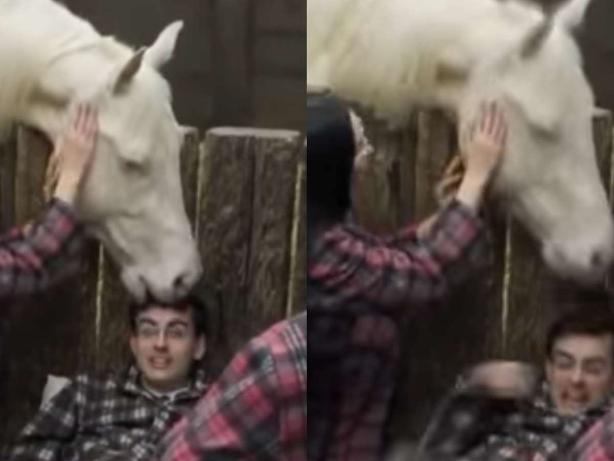Cavalo morde a cabeça de Dudu Camargo na baia de 'A Fazenda' e jornalista dá um berro após susto; confira o vídeo completo