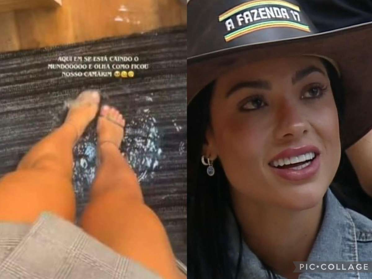 "Vocês acham que a vida de blogueira é fácil? Olha isso, gente! Nosso camarim alagou tudo. Está tudo alagado", disse a influenciadora em vídeo. Outros peões como, Michelle Barros, Shia Phoenix, Tàmires Assîs e Maria Carolina Caporusso estavam presentes durante a gravação do programa que vai ao ar nos domingos.
