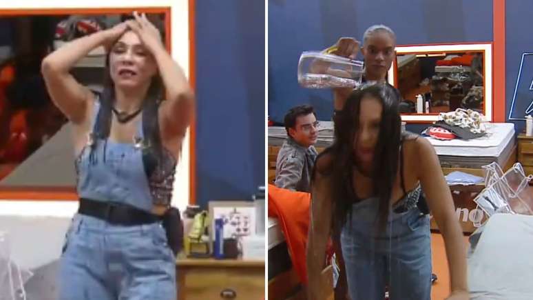 Assim que viu que a peoa mexeu em seus pertences, a DJ entrou no quarto com uma jarra cheia de agua e despejou na advogada. "Eita, Brasil. Ai, meu Deus do céu. Olha ai, Yoná, já tomou banho hoje", disse Dudu Camargo tentando aliviar a situação.