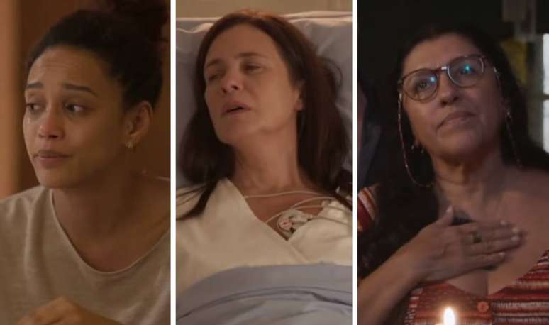 Taís Araújo (Vitória), Adriana Esteves (Thelma) e Regina Casé (Lurdes) em cena na novela das 9 de 'Amor de Mãe'.
