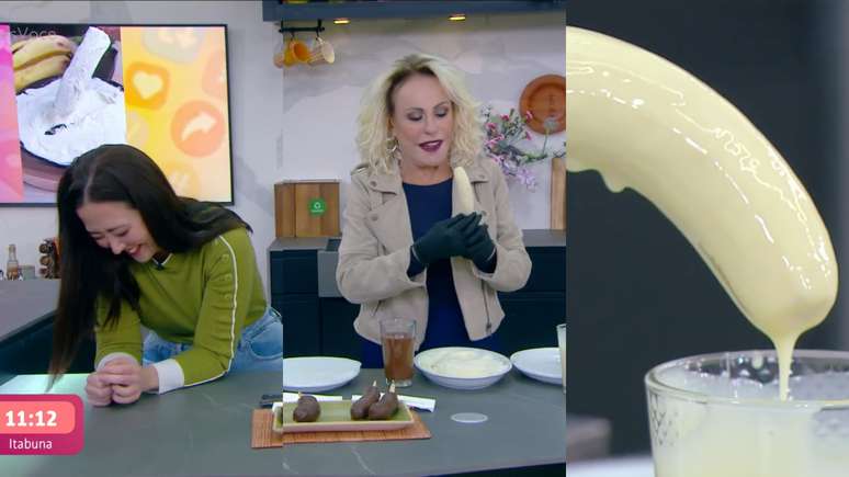 A jornalista disse que chegou a comprar o doce durante uma viagem que fez para o Canadá. "Quanto custava?", indagou a apresentadora. "Uns cinco dólares", contou a repórter. "Nossa, cara! Vamos imaginar que o dólar estivesse a cinco, dá 25 reais por banana. Que bananinha cara!", analisou Ana.