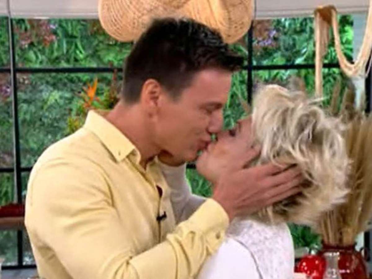 Ana Maria Braga dá selinho durante o programa ao vivo em ex-funcionário do Mais Você
