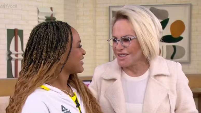A apresentadora Ana Maria Braga ficou visivelmente emocionada nesta terça-feira (13/8) ao tomar café com a medalhista olímpica Rebeca Andrade no "Mais Você", onde elas conversavam sobre a participação da atleta nos Jogos Olímpicos de Paris.