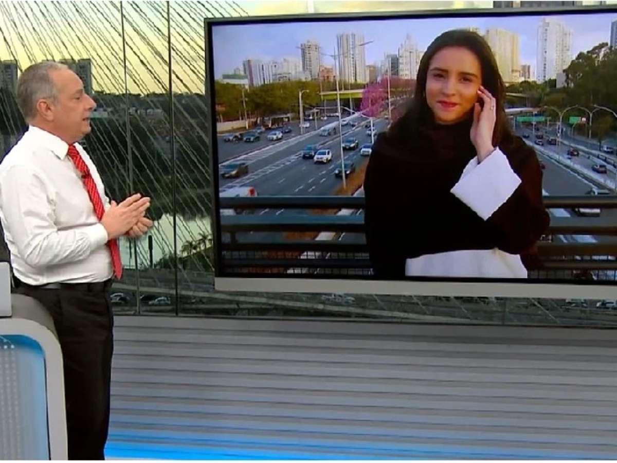 Na sequência, Burnier chamou a apresentadora do mapa-tempo Eliana Marques, que voltou de férias, para comentar o clima. "Bom, todos os nossos repórteres falando de frio, tá todo mundo falando de frio. Teve recorde ou não?", questionou. Eliana respondeu: "Recorde, não. Tivemos 7,9°C de temperatura, mas o recorde do ano foi 6°C, em 25 de junho. E esse frio vai continuar, sendo assunto na maior parte da semana".