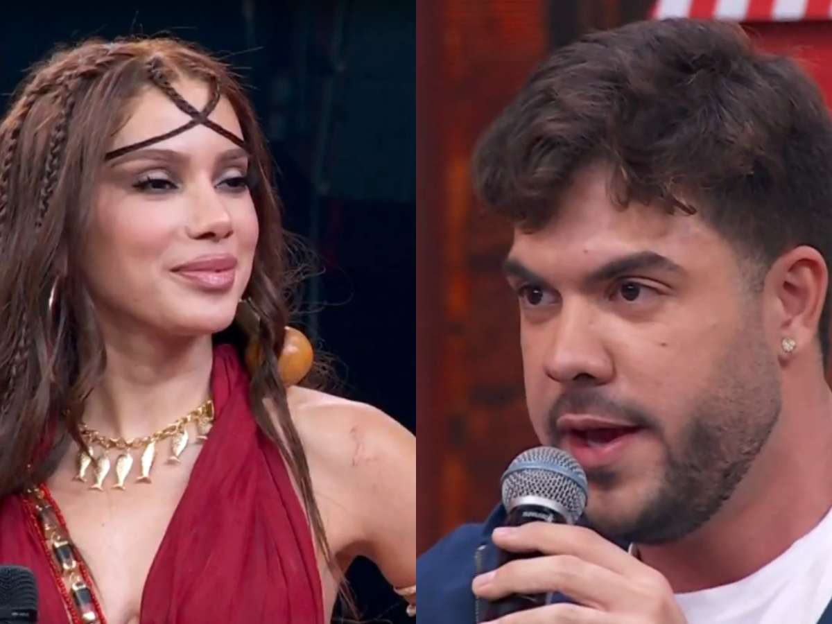 "Ele nas fotos fica sorridente, mas pessoalmente comigo ele não fala um ai. Ele tem medo", revelou a artista. "Eu tenho medo", assumiu o influencer. "Não importa aonde a gente esteja, eu nem lembro que ele está presente porque ele fica quieto, ele entra mudo e sai calado", destacou a estrela.