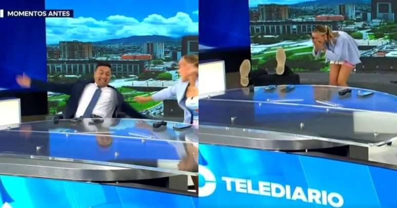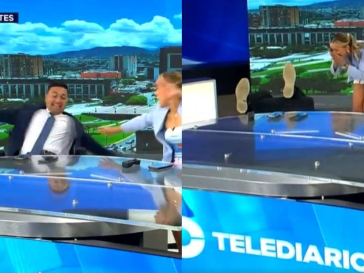 Apresentador cai da cadeira ao vivo em telejornal e deixa colega desesperada