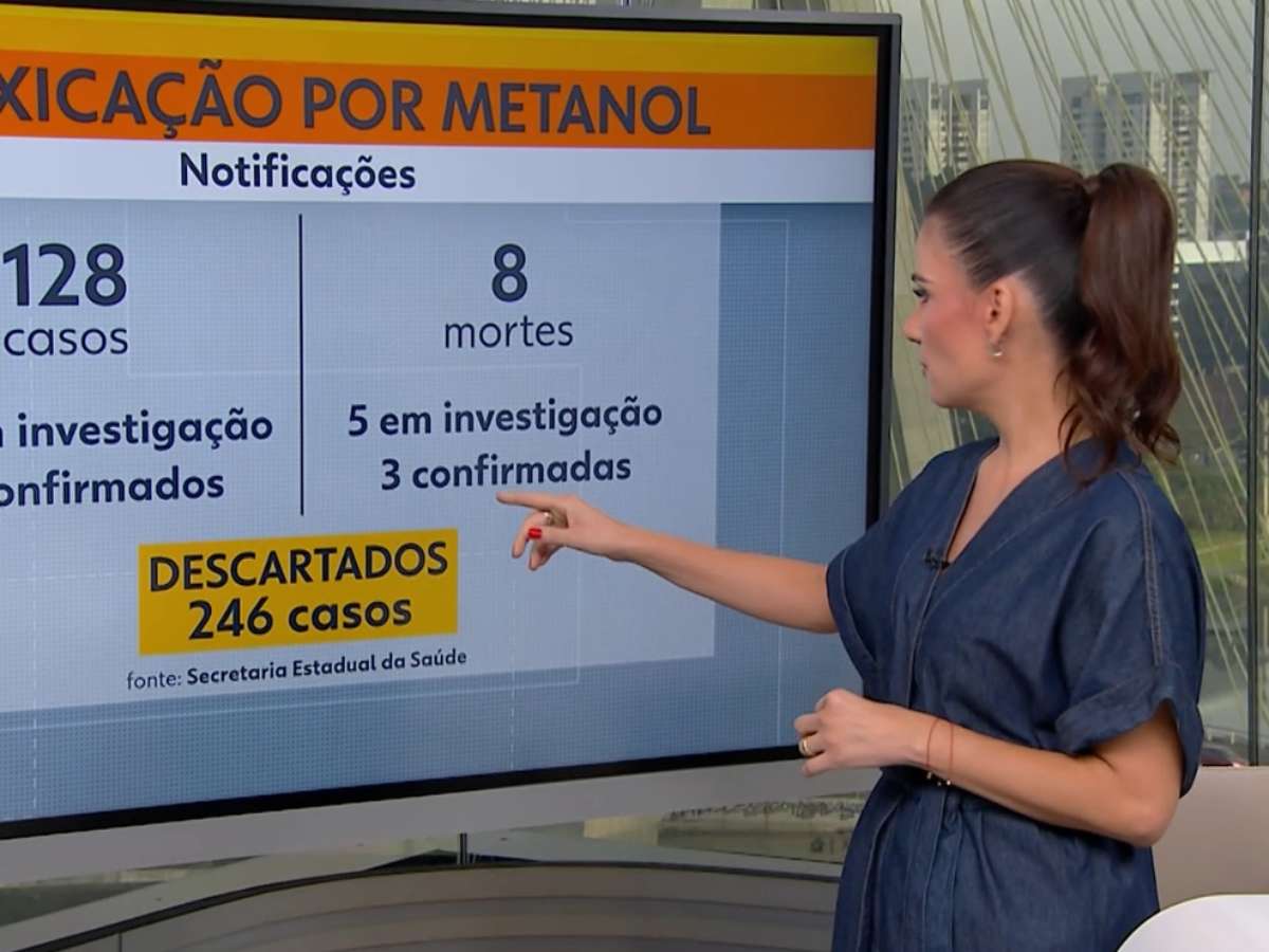 No ‘Bom Dia SP’ desta terça-feira (14), Sabina Simonato estranhou os dados exibidos no telão do estúdio a respeito dos casos de mortes por bebidas contaminadas por metanol em São Paulo.