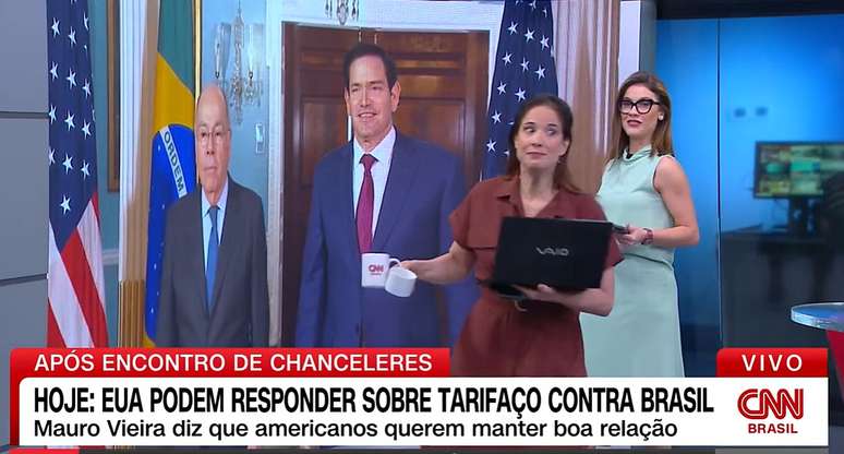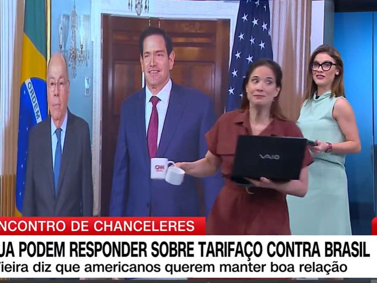 Por sorte, a notícia em destaque (o aperto de mão com sorrisos entre o chanceler brasileiro Mauro Vieira e o secretário de Estado norte-americano Marco Rubio) era igualmente descontraída.