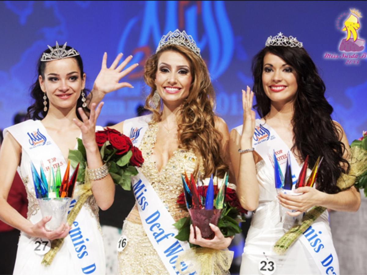 A loira de 25 anos, que perdeu a audição na infância, foi eleita Miss Surda Brasil em Fortaleza, em fevereiro deste ano. O segundo lugar ficou Erika Ďuricová, da Eslováquia, e o terceiro para Queval Marianne, da França.