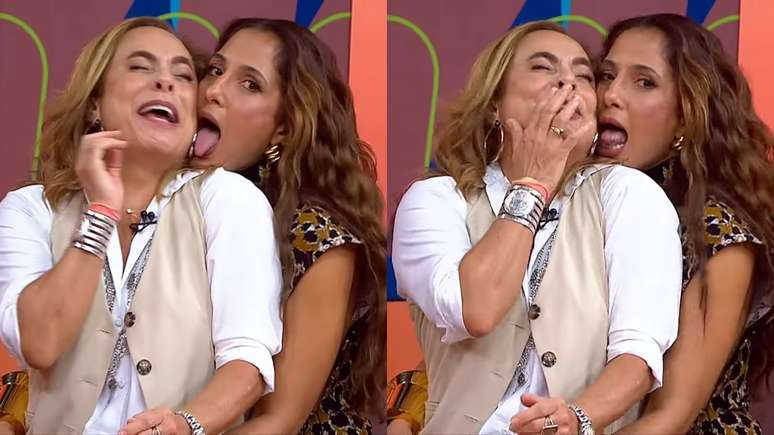 Camila Pitanga lambe Cissa Guimarães ao vivo em programa: 'Encoxada'