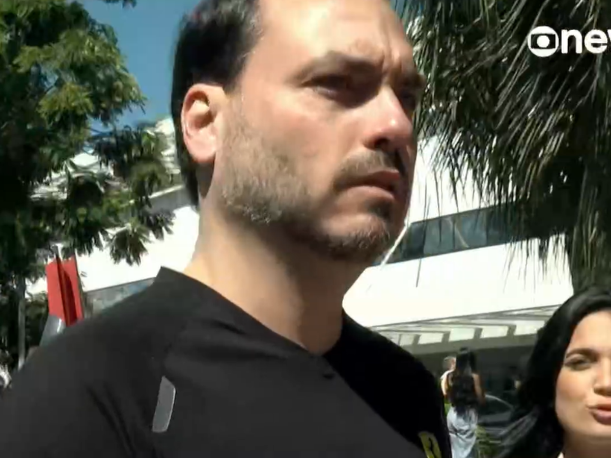 Carlos Bolsonaro passou em frente a uma repórter da GloboNews durante transmissão ao vivo sobre a cirurgia de Jair Bolsonaro em Brasília, sem responder a perguntas da jornalista.