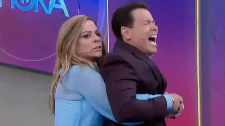 No 'Tá na Hora', do SBT, Christina Rocha mostrou como fazer a manobra Heimlich, simulando situação com Marcão do Povo