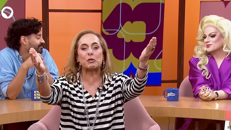 Assim que a apresentadora citou o nome da cantora, o humorista Fernando Pedrosa abriu a boca e depois se virou, com um olhar de cumplicidade, para a drag queen Lorelay Fox. A reação dos dois, que apareciam na tela atrás de Cissa, repercutiu nas redes sociais.