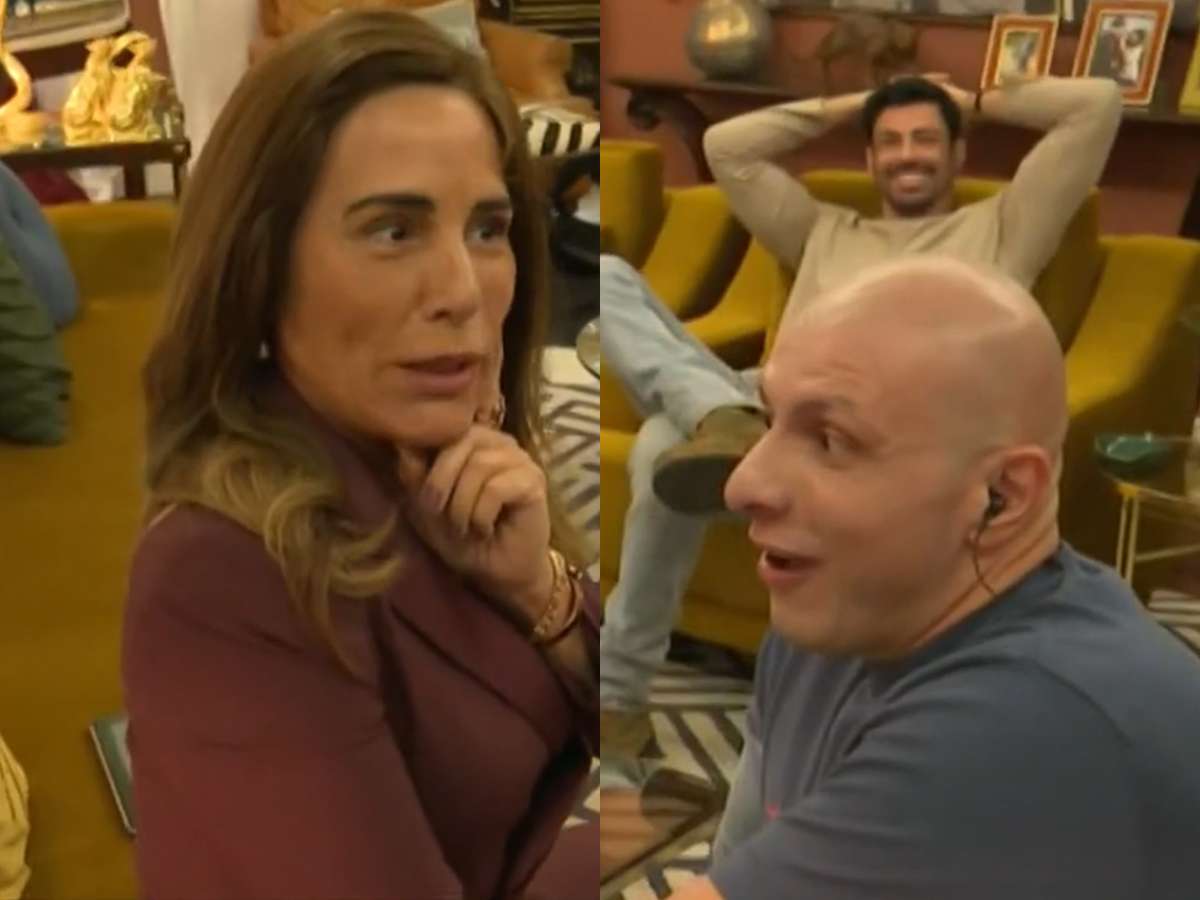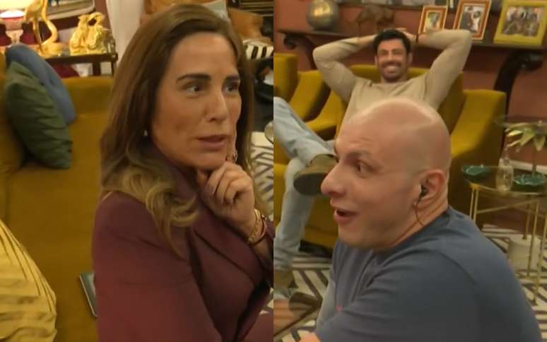 Nesse momento, o climão tomou conta do local e Cauã ficou rindo disfarçadamente do outro lado. "A gente está ligado aqui, porque a gente tem que ficar concentrado", acrescentou Glória, pontuando que não tem "botão".