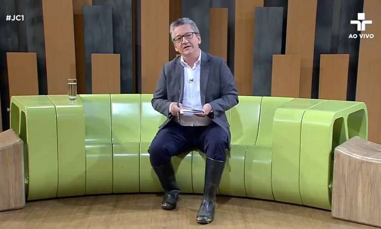 "Nós estamos fazendo essa edição do JC1 de maneira excepcional no estúdio improvisado e emprestado do Metrópoles [outro programa da emissora] porque o estúdio do JC1 está alagado", explicou o jornalista.