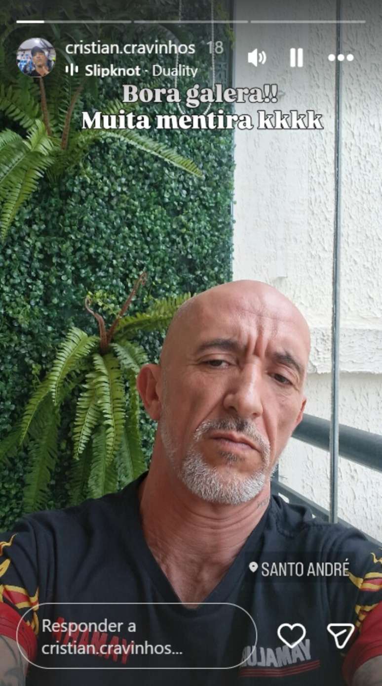 "Bora, galera! Muita mentira", escreveu, em suas redes sociais. Condenado a 38 anos e seis meses de prisão, ele cumpre pena em regime aberto desde março de 2025.