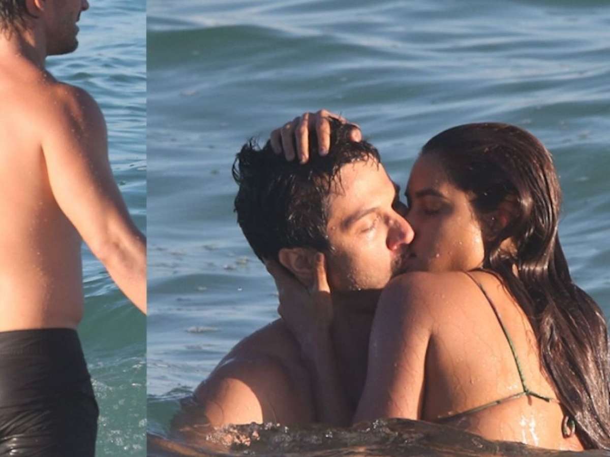 De biquíni, Lucy Alves beija Romulo Estrela em praia durante gravação da reta final da novela 'Travessia'. Fotos!