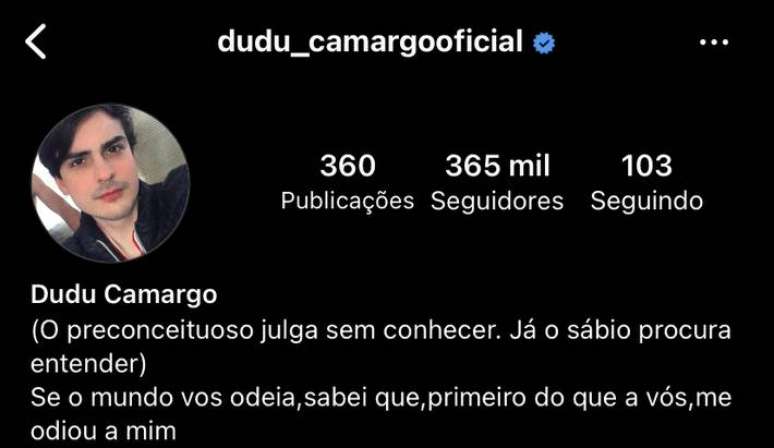 Camargo escolheu alterar a descrição de seu perfil no Instagram para um versículo bíblico. "O preconceituoso julga sem conhecer, já o sábio, procura entender. Se o mundo vos odeia, sabei que, primeiro do que a vós, me odiou a mim", escreveu o apresentador.