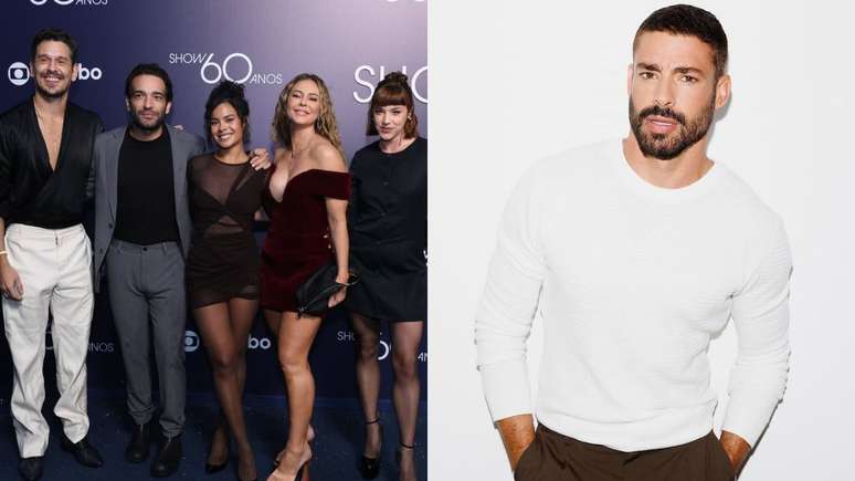 Após polêmicas, elenco de Vale Tudo posa para foto sem Cauã Reymond no hall da festa de 60 anos da rede Globo.