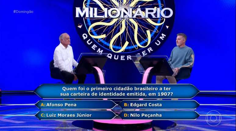 Paulo, ex-militar de Maricá, no Rio de Janeiro, foi o participante da semana no ‘Quem Quer Ser Um Milionário’, no Domingão com Huck deste domingo, 25. Ele está buscando a chance de ficar milionário no programa há 7 semanas e, dessa vez, conseguiu ser o sortudo da noite. Ele seguiu no jogo até a pergunta que valia R$ 300 mil, que era sobre carteira de identidade, e desistiu. Você saberia responder? Confira!