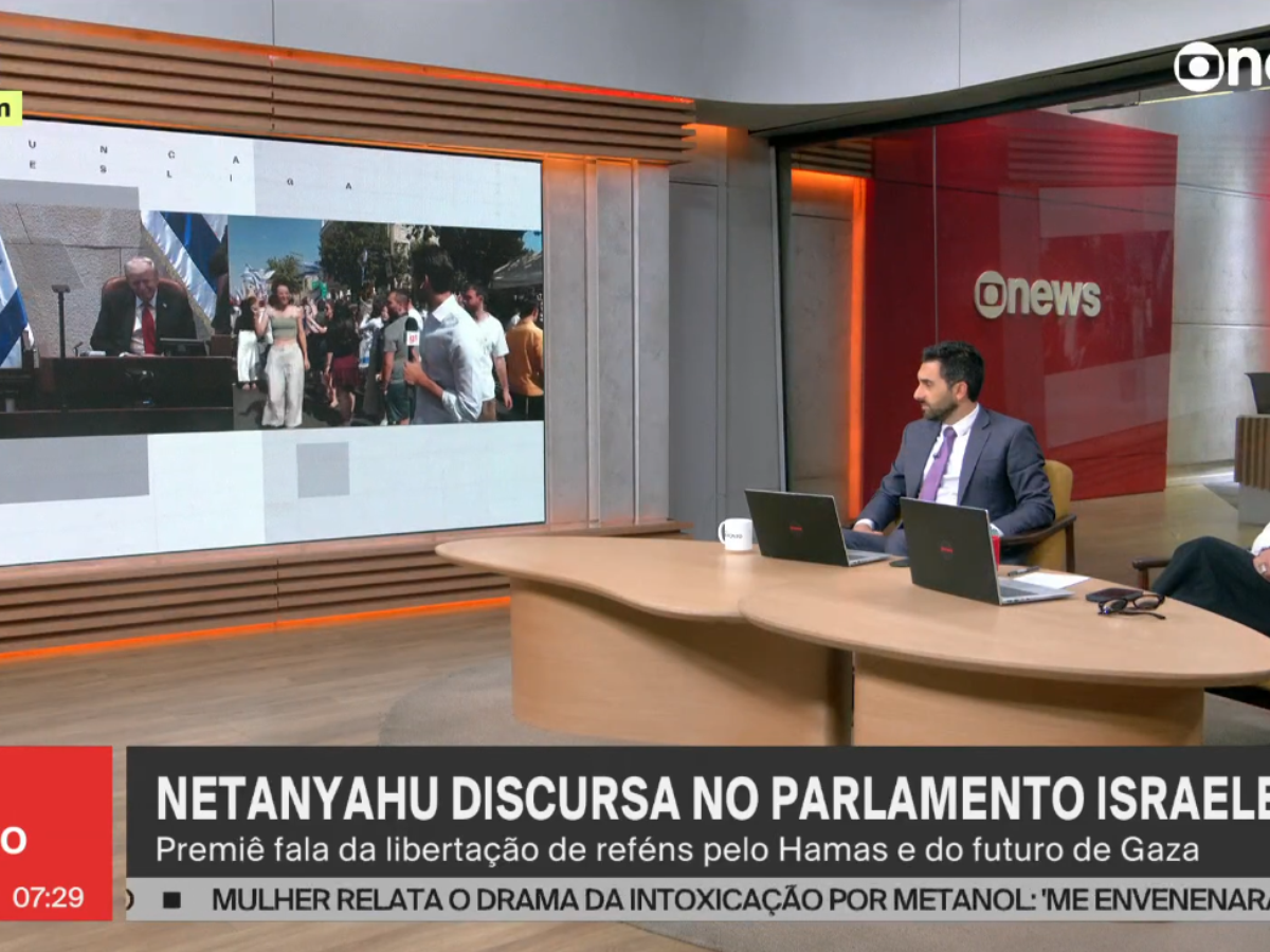 Por volta de 7h35, o noticiário mostrava o discurso do premiê diretamente de Jerusalém. Na ocasião, ele falava sobre a libertação dos reféns pelo Hamas e o futuro da Faixa de Gaza. Em determinado momento, enquanto a tradutora simultânea falava, o áudio de Mônica vazou.