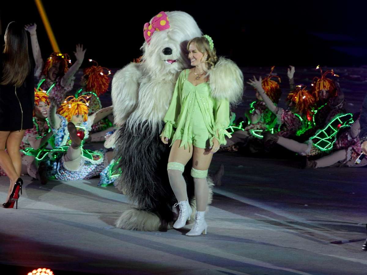 Bruna Marquezine distribui flores em show de Roberto Carlos