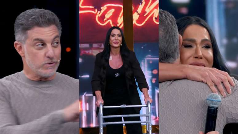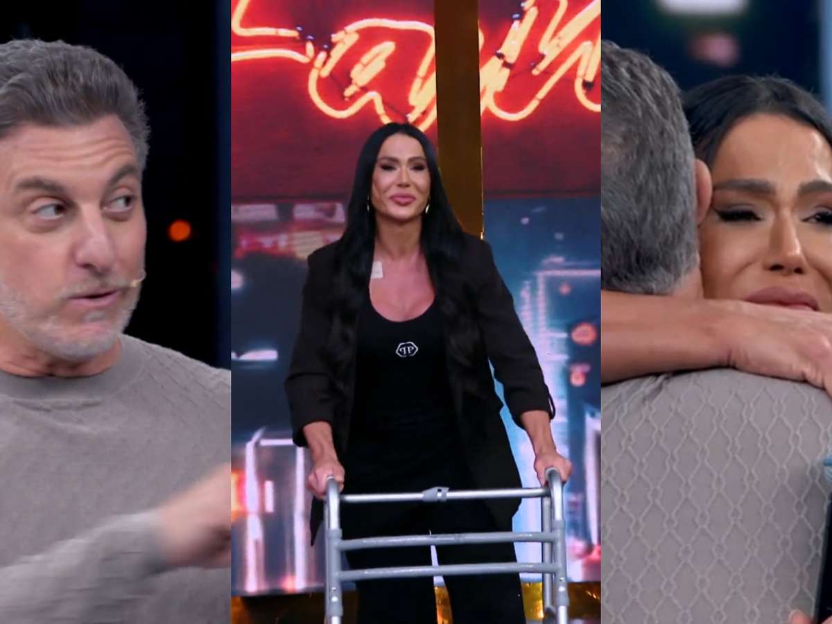 Gracyanne Barbosa aparece de andador no Domingão, Luciano Huck a faz chorar com proposta e ganha resposta