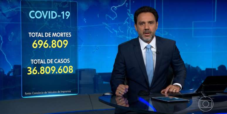 O último boletim exibido no telejornal mostrou quase 700 mil mortos e 36,8 milhões de casos registrados.