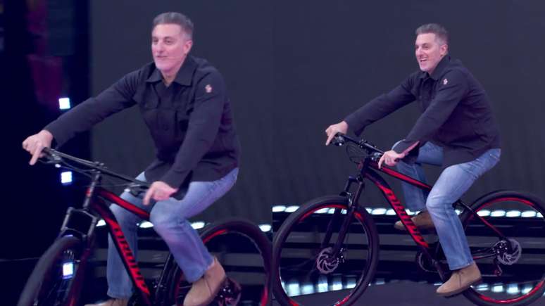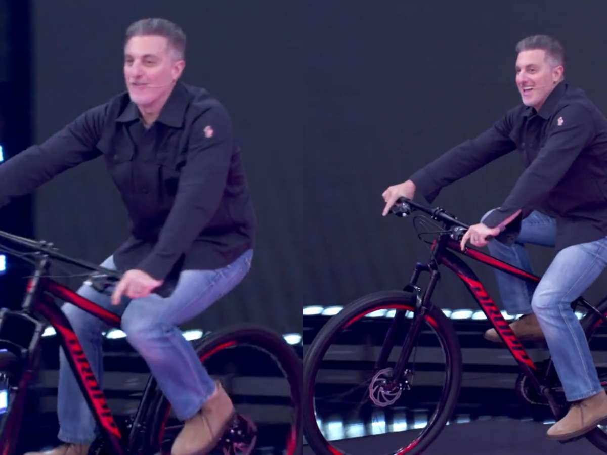 Luciano Huck surpreendeu ao aparecer pedalando uma bicicleta no Domingão