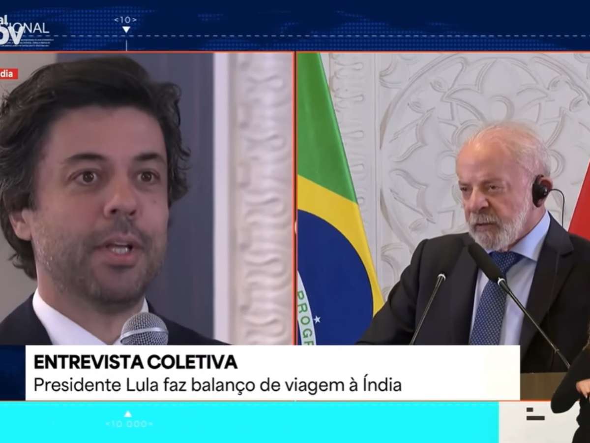 Em coletiva de imprensa na Índia, transmitida ao vivo no CanalGov, o repórter Tiago Eltz, enviado especial da Globo e GloboNews, iniciou uma pergunta relacionada a um telefonema entre Lula e o presidente dos Estados Unidos.
