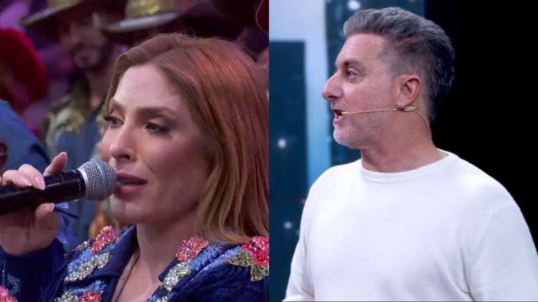 Manu Bahtidão ficou emocionanda no Domingão e Luciano Huck resolveu questionar para a cantora o que estava acontecendo no programa