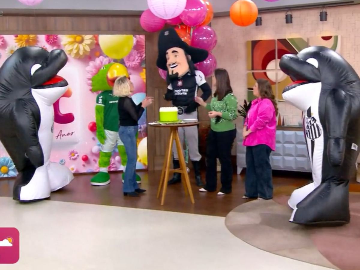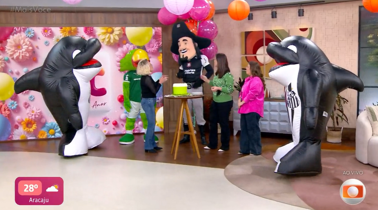O ‘Mais Você’, da Globo, teve presenças ilustres nesta quarta-feira, 22, em episódio da semana de comemorações dos 26 anos do programa. Com direito a bolo, os mascotes de Palmeiras, Corinthians e Santos se juntaram a Ana Maria Braga e companhia.