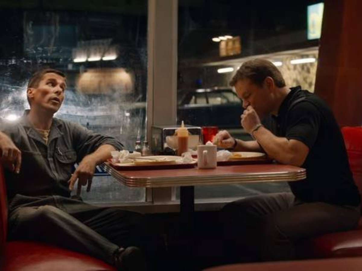 O filme, que será lançado em 15 de novembro, conta a história real do designer automotivo americano Carroll Shelby (Damon) e do piloto britânico Ken Miles (Bale).