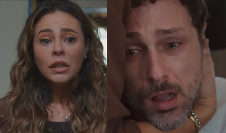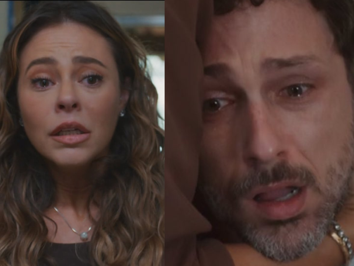 "Meu Deus! O que está acontecendo? Léo? Você me ouve? Ouve o que eu tô dizendo? Léo, sou eu... a Heleninha, meu amor, sou eu. Você tá vivo!", expressou ela, com a voz embargada, tenta...