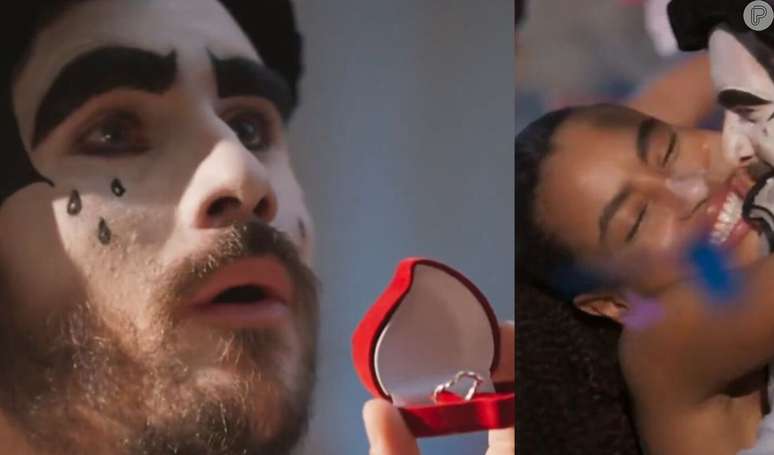 Viola é surpreendida por pedido de casamento de Rudá vestido de pierrô