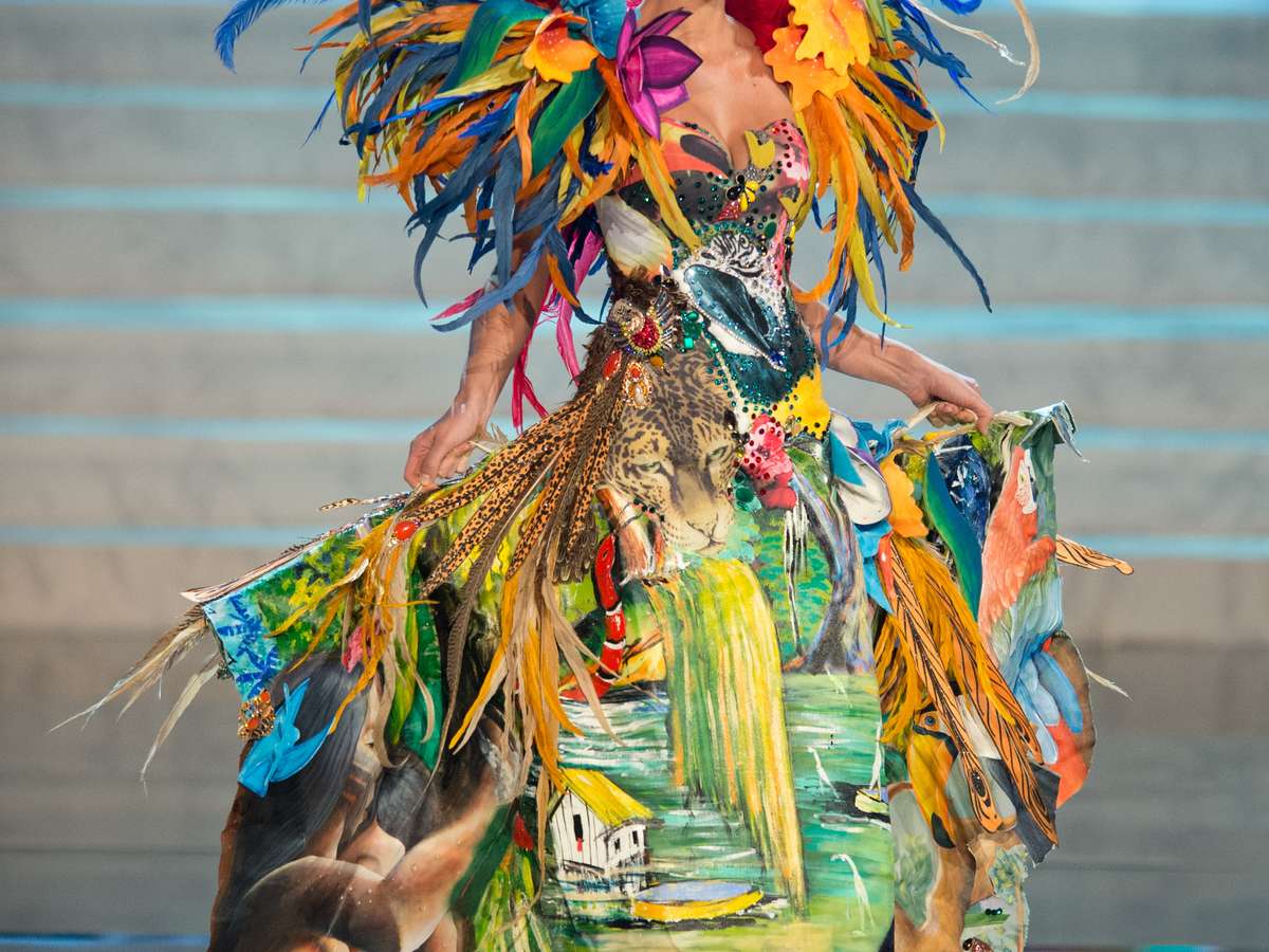 Miss Brasil desfila traje típico com elementos da fauna e flora