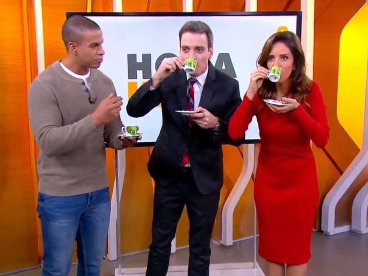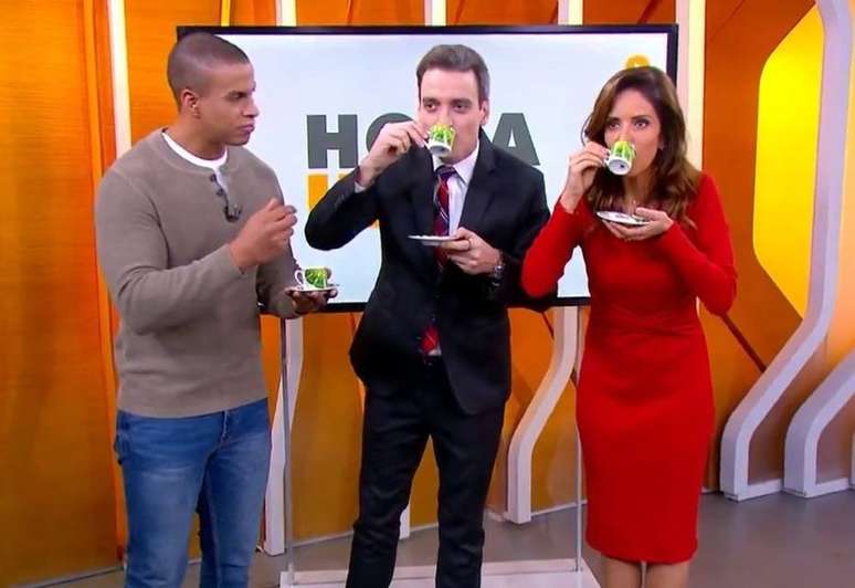 Jornalistas tomam café com manteiga no 'Hora 1', da TV Globo