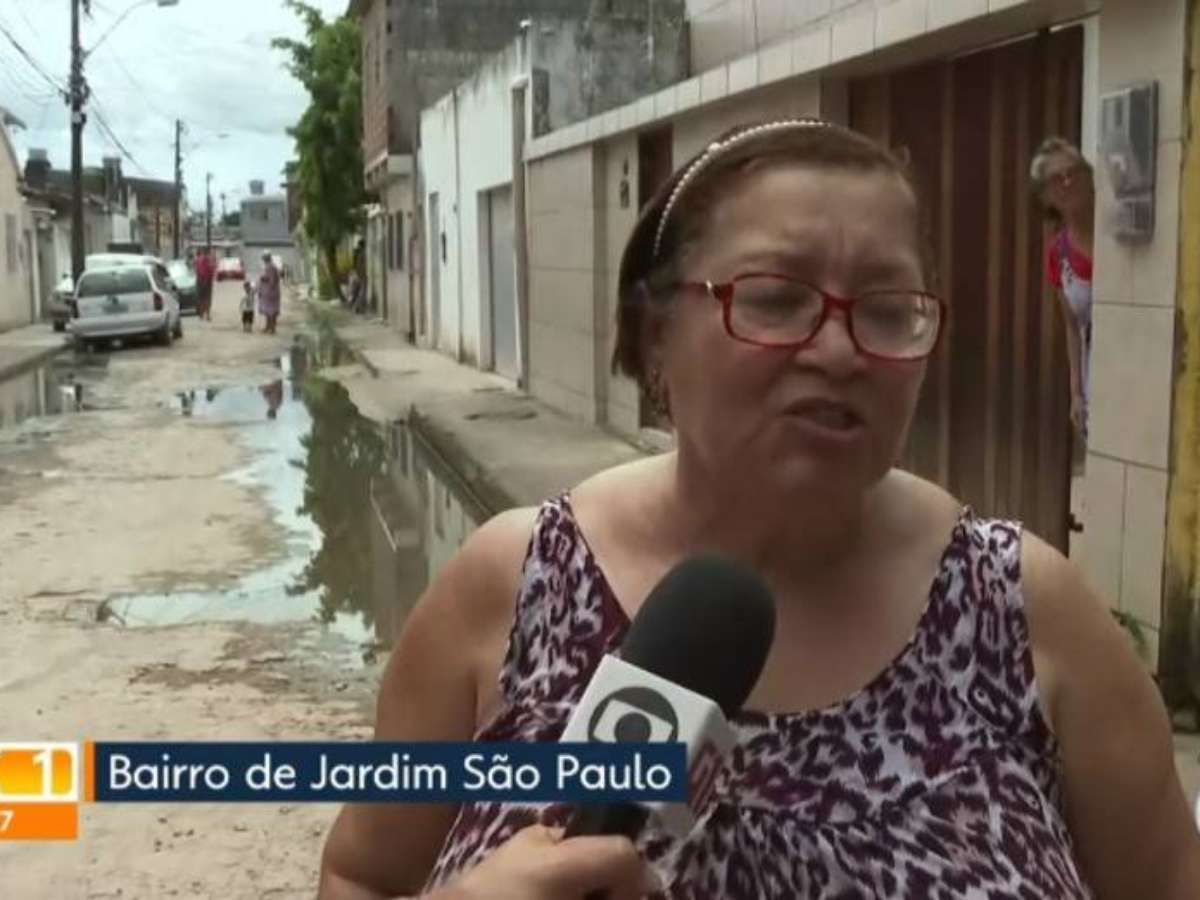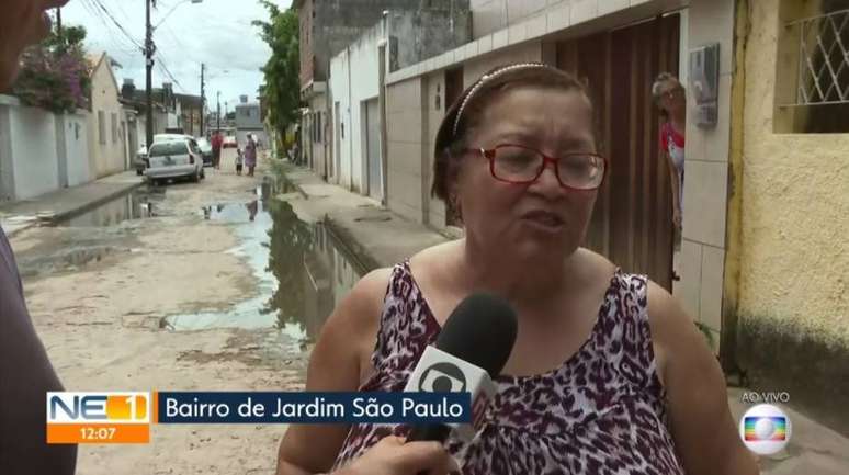 O repórter Bruno Fontes conversava com duas senhoras, Laurene e Aldilene, moradoras do bairro de Jardim São Paulo, em Recife, sobre alagamentos e infestação de insetos na região.