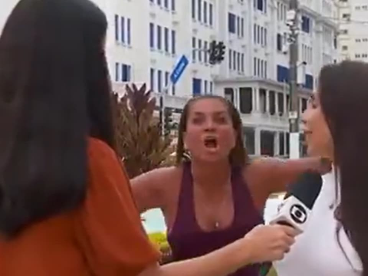 Mulher grita 'Globo lixo' durante transmissão ao vivo e faz gesto obsceno; vídeo