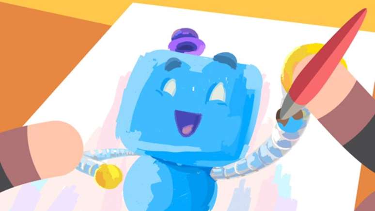 Em Aquarela, a animação traça um paralelo entre a arte feita à mão, simbolizada pelo Bita, e a arte feita por computador, digital, que é representada pelo robô.
