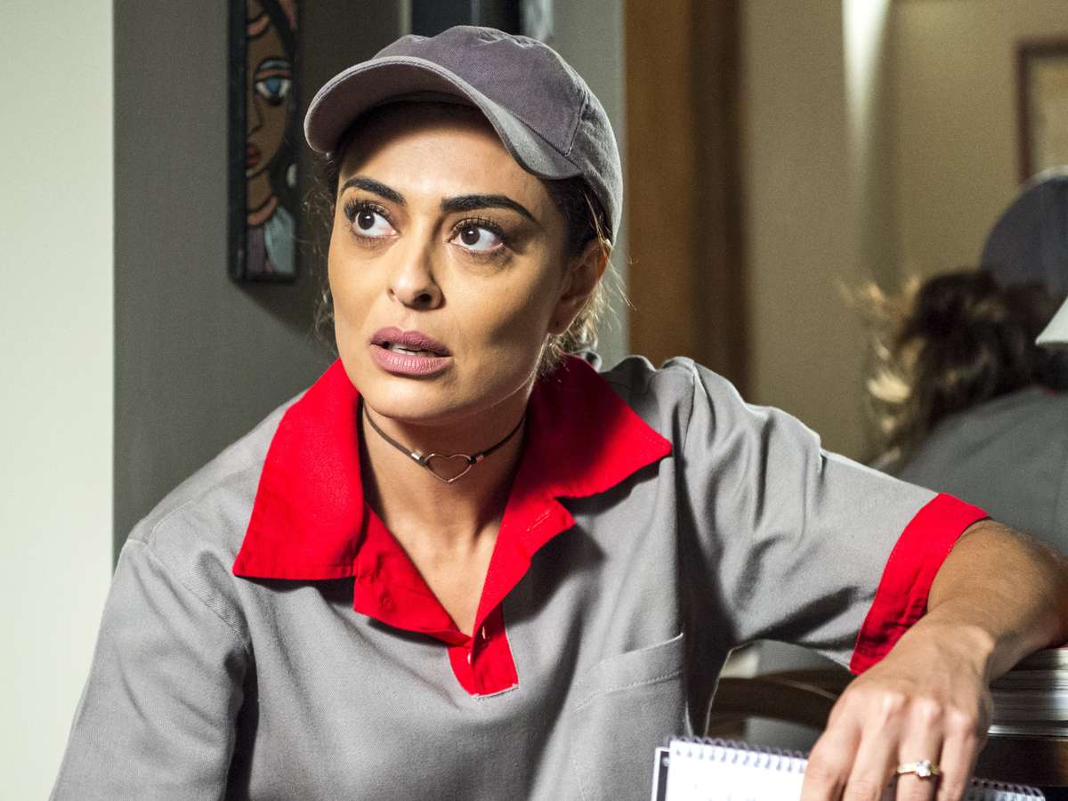 Disfarçada de Gari, Bibi pede abrigo na casa de Silvana