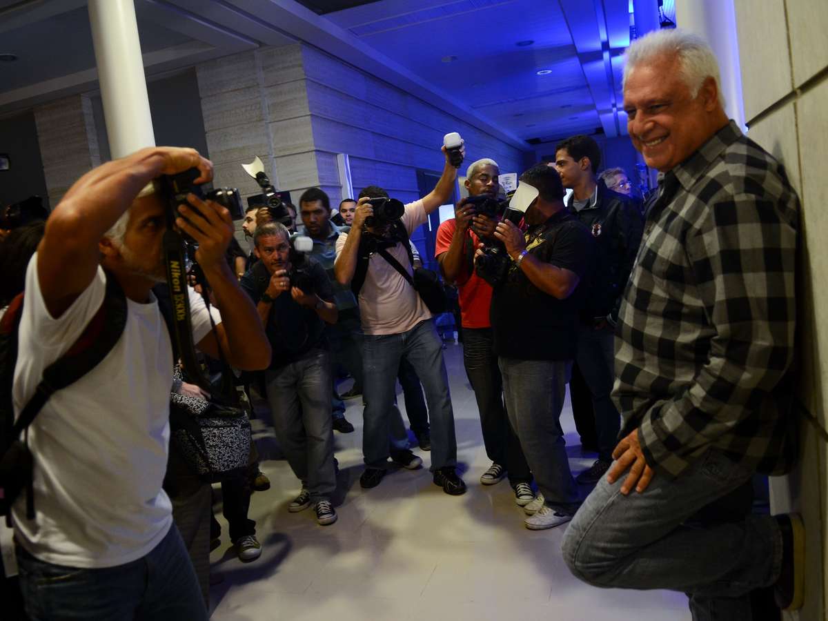 Ator de 64 anos posa para fotos na coletiva de lançamento de 'Amor à Vida'