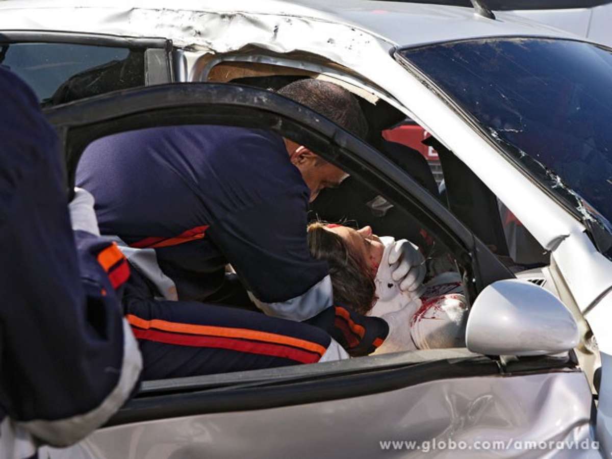 O problema é que para alugar o flat, ela precisa chegar à imobiliária em meia hora. Com pressa, a médica pega o carro e sai dirigindo de maneira quase imprudente. Até que, após ultrapassar um carro, ela se vê cortada por um caminhão, de repente. A batida é inevitável. Amarilys fica presa entre as ferragens e é socorrida por paramédicos. A cena vai ao ar na próxima segunda-feira (28).