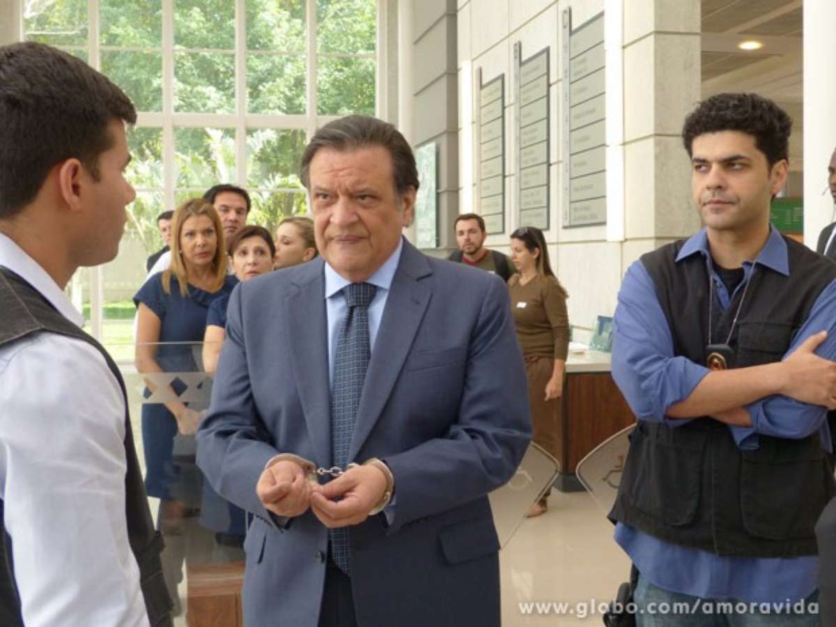 Dois policias procuram Atílio no hospital e comunicam a prisão. Algemado, o administrador pede a ajuda de César (Antonio Fagundes), que procura imediatamente Rafael (Rainer Cadete) e Eron (Marcello Antony). Os advogados, então, correm para a delegacia e explicam que vão requerer ao juiz a liberdade provisória. “Sejam rápidos. Eu não quero passar uma noite sequer nesse lugar”, pede Atílio, desesperado.