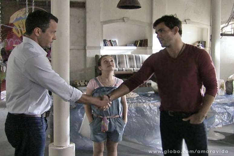 Bruno (Malvino Salvador) ainda não se acostumou com a amizade de Paulinha (Klara Castanho) e Ninho (Juliano Cazarré), mas pretende se esforçar para agradar à filha. Depois de combinar com a menina que ele a levará aos encontros com seu pai biológico, chega o momento de o corretor cumprir o prometido. A cena da novela Amor à Vida, da TV Globo, vai ao ar nesta segunda-feira (21).