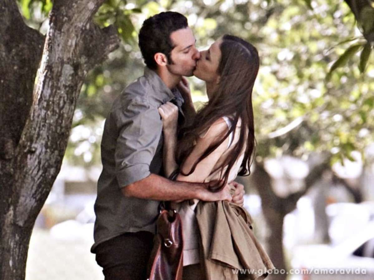 Bruno (Malvino Salvador) e Paloma (Paolla Oliveira) se beijam após discussão